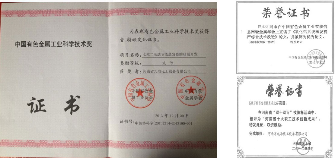 公司擁有《濃縮鋁酸鈉溶液用七效分段蒸發(fā)器組》、《一種高效浮選集成系統(tǒng)》、《礦物解離集成系統(tǒng)》等32項(xiàng)國(guó)家專利。